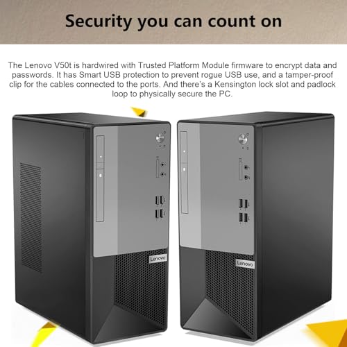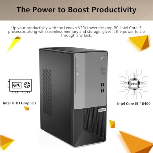 Lenovo V50t Tower Desktop Computer | Intel 6-Core i5 Processor | 32GB RAM | 1TB SSD | DVD-RW | 2-Monitor Support 4K | HDMI | RJ-45 | VGA | Wi-Fi | Wired Keyboard & Mouse | Windows 11 Pro | Black